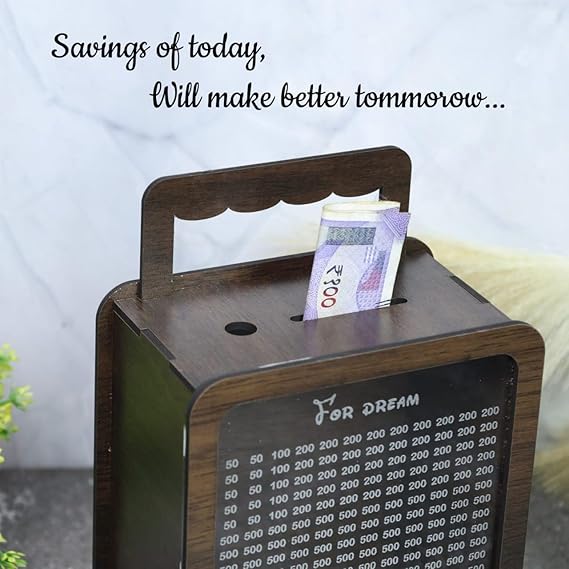 - VISUAL MOTIVATION: Clear display panel shows currency denomination layout, helping track progress towards the 1 lakh rupees savings goal