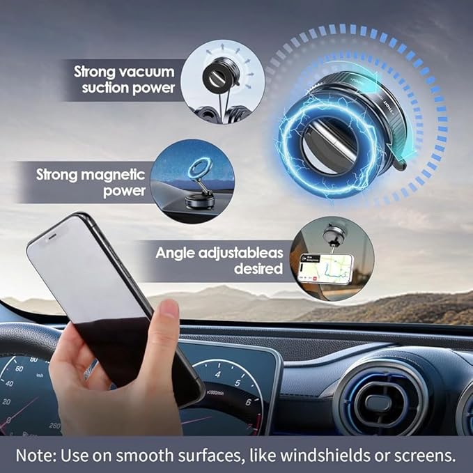 - ✅Powerful Magnetic Grip:Strong magnets securely hold your phone in place, even on rough roads and sharp turns